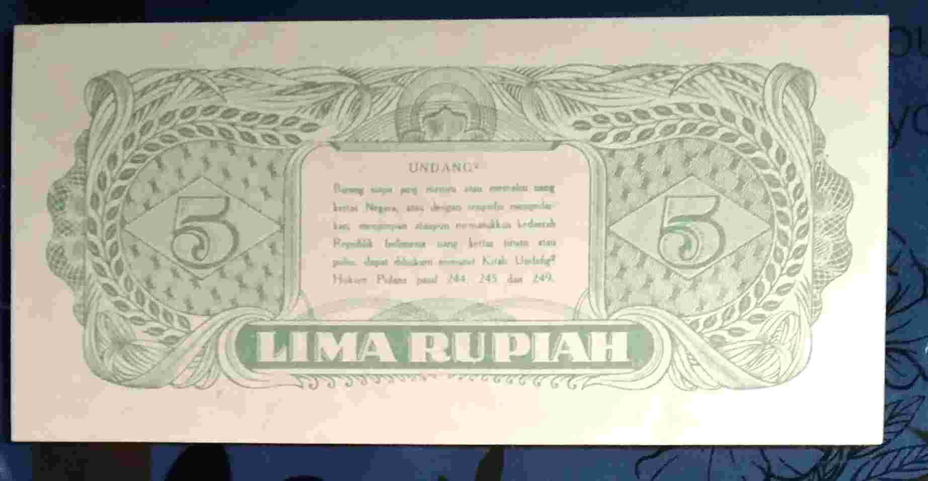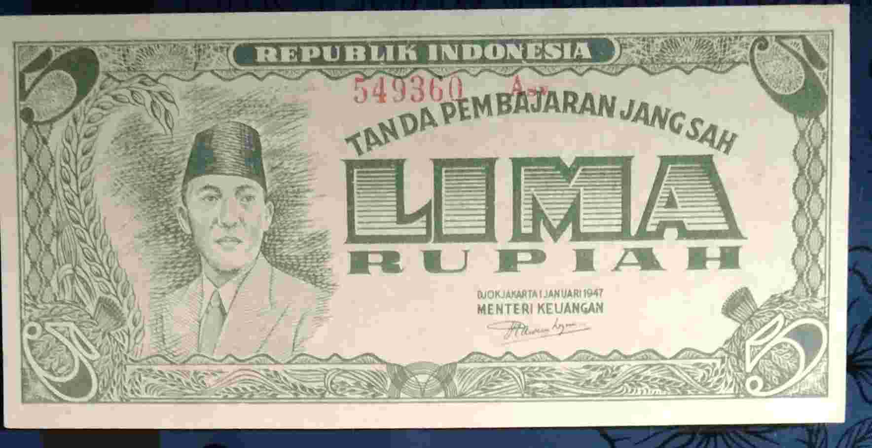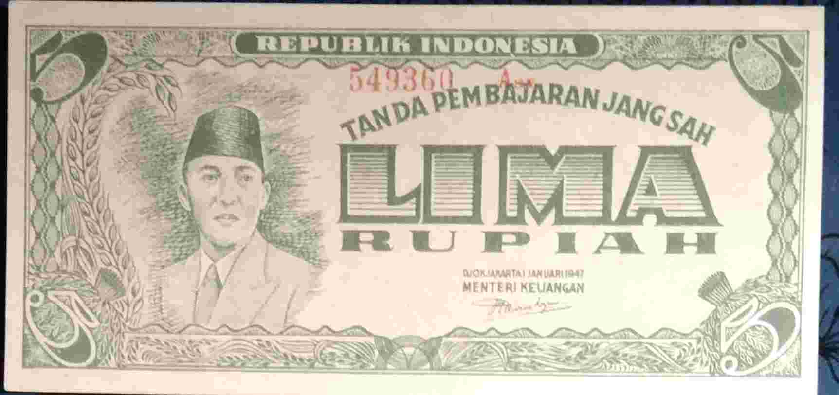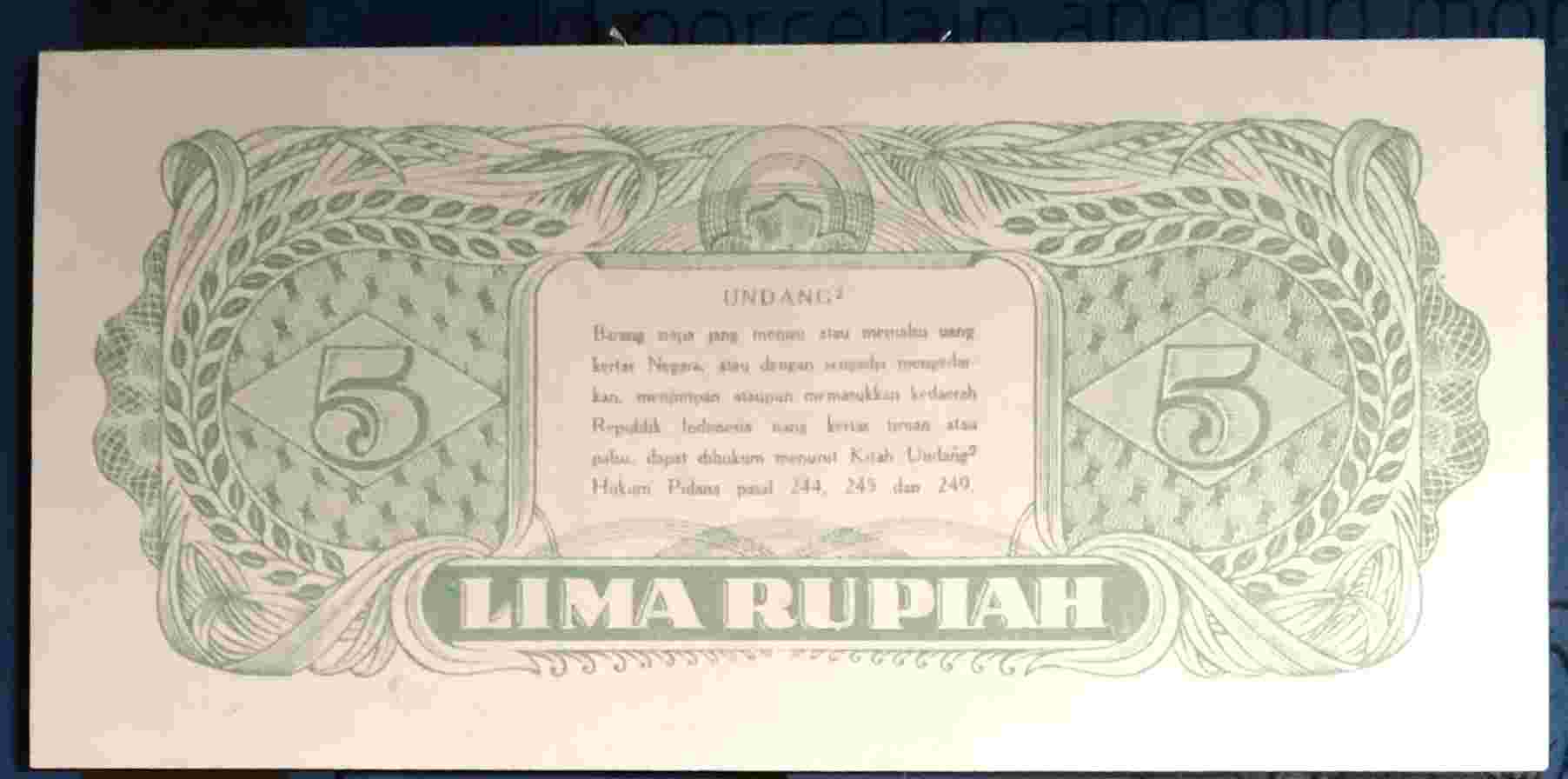 Uang ORI Indonesia 5 Rupiah Tahun 1947
