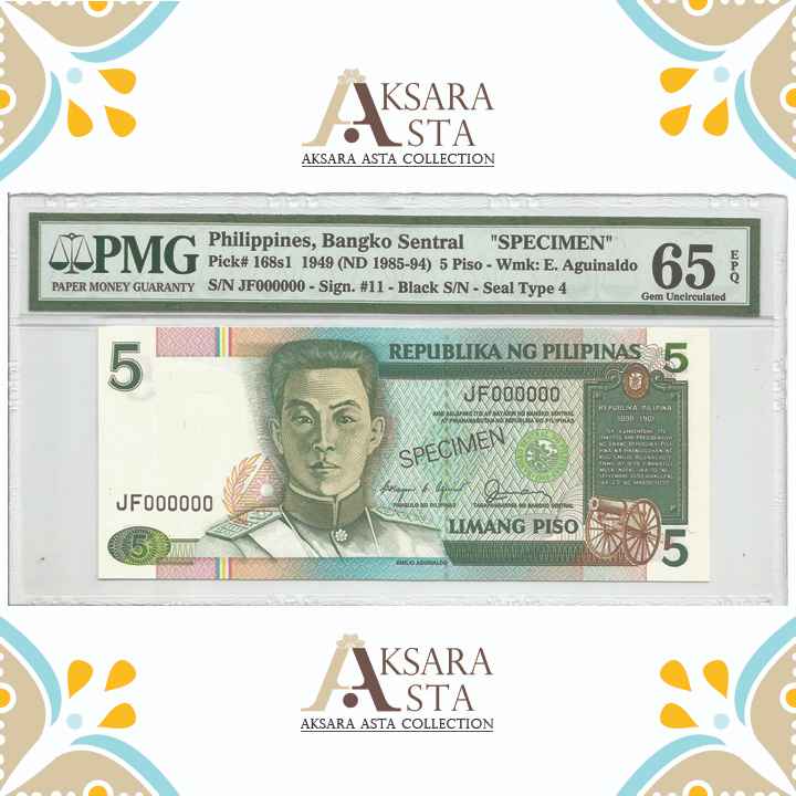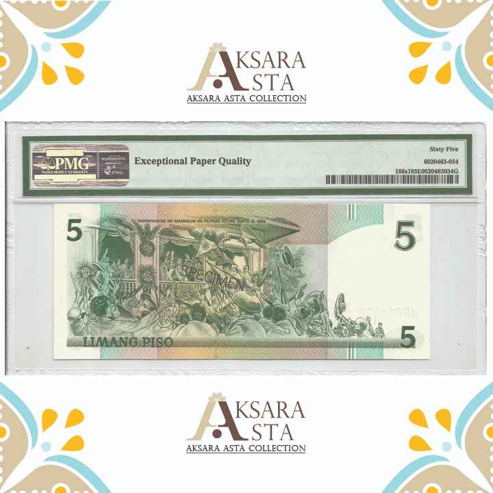 Nama barang : Uang Philippines 5 Peso th 1949 PMG 65 EPQ Specimen