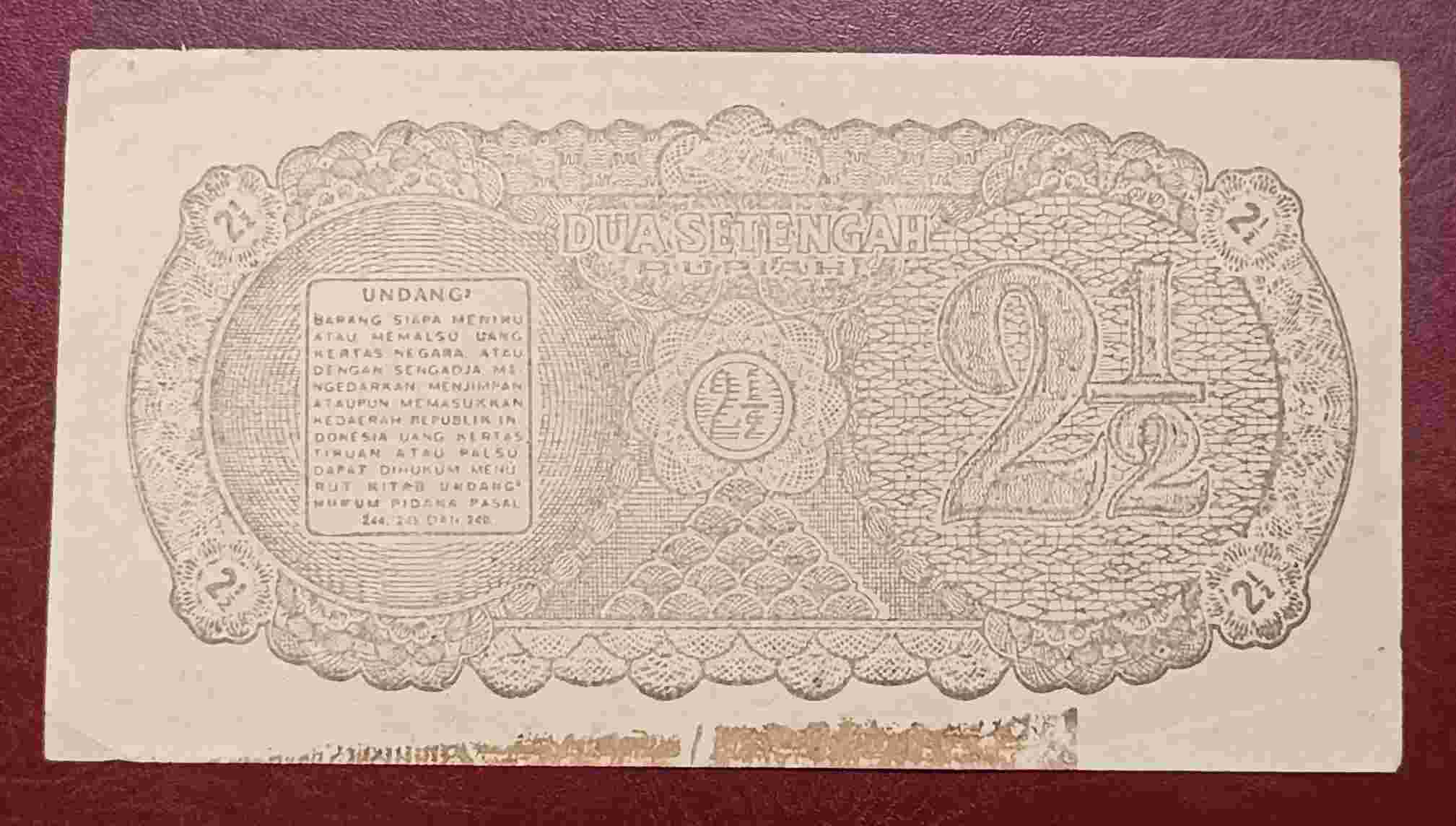 Uang kuno ORI jogja 2 1/2 rupiah 1947