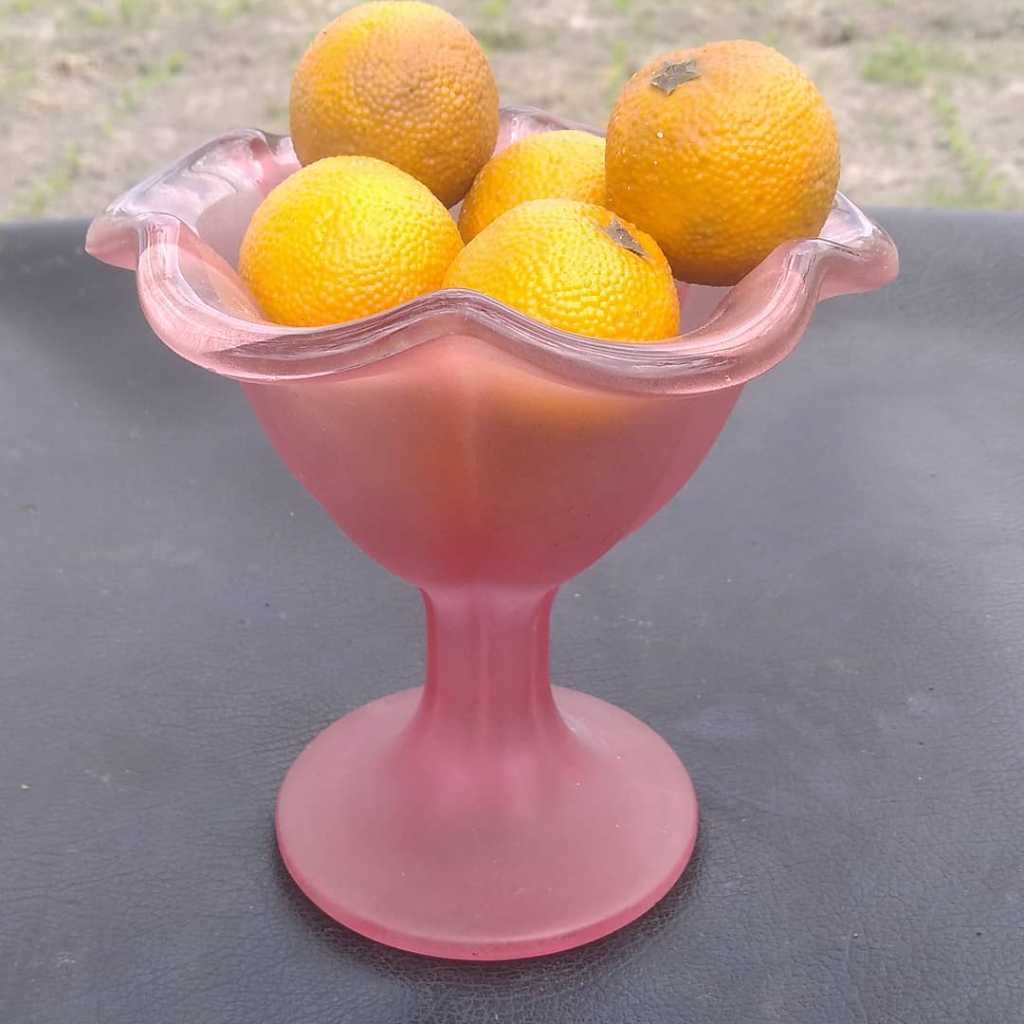 Vas gelas pink tggi 13 lebar 12 cm dan jeruk hias