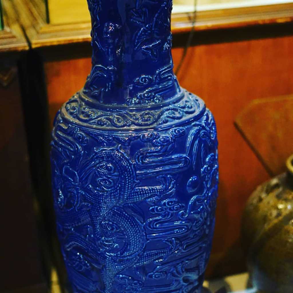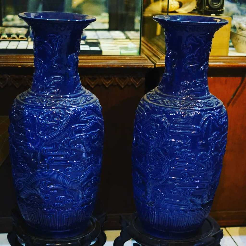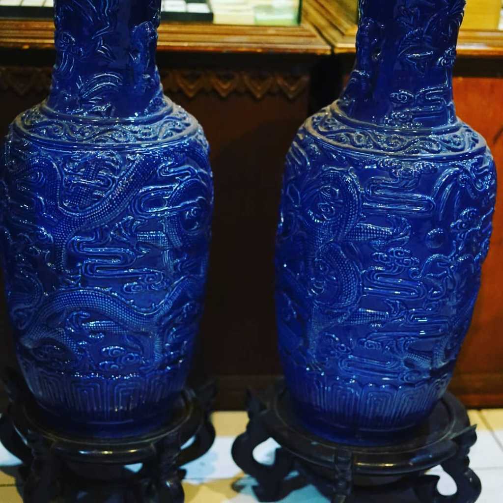 BLUE VASE//VASE BIRU UKIRAN TIMBUL, 1pair//Kondisi baik//Check
