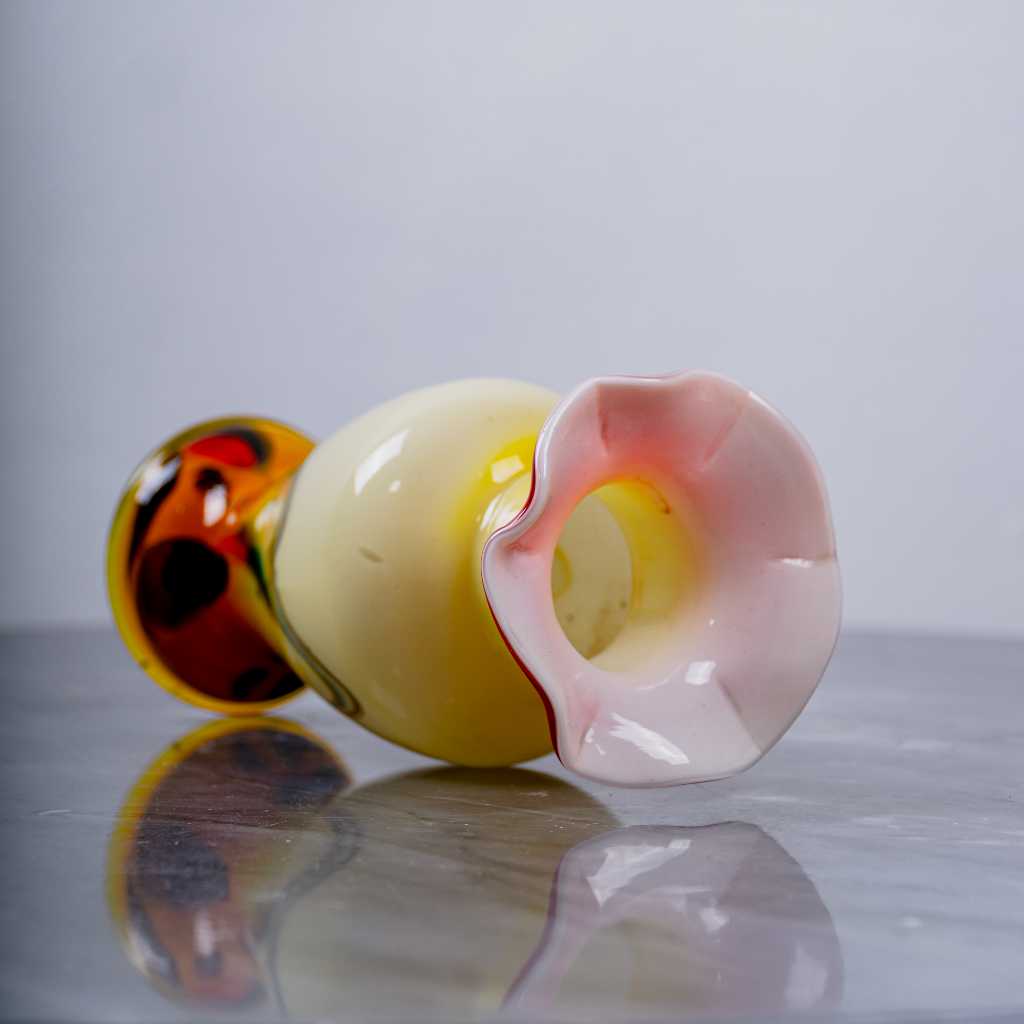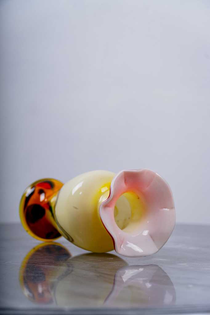 Gelas antik orange kemerahan bertekstur