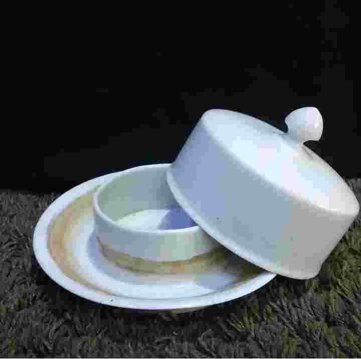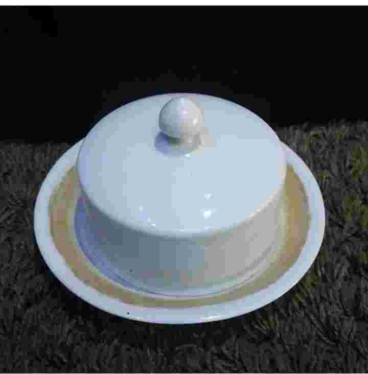 Wadah mentega kuno Tinggi dr bwh sampai tutup 9,5cm Diameter 17cm Utuh Ada ngrambut seperti difoto