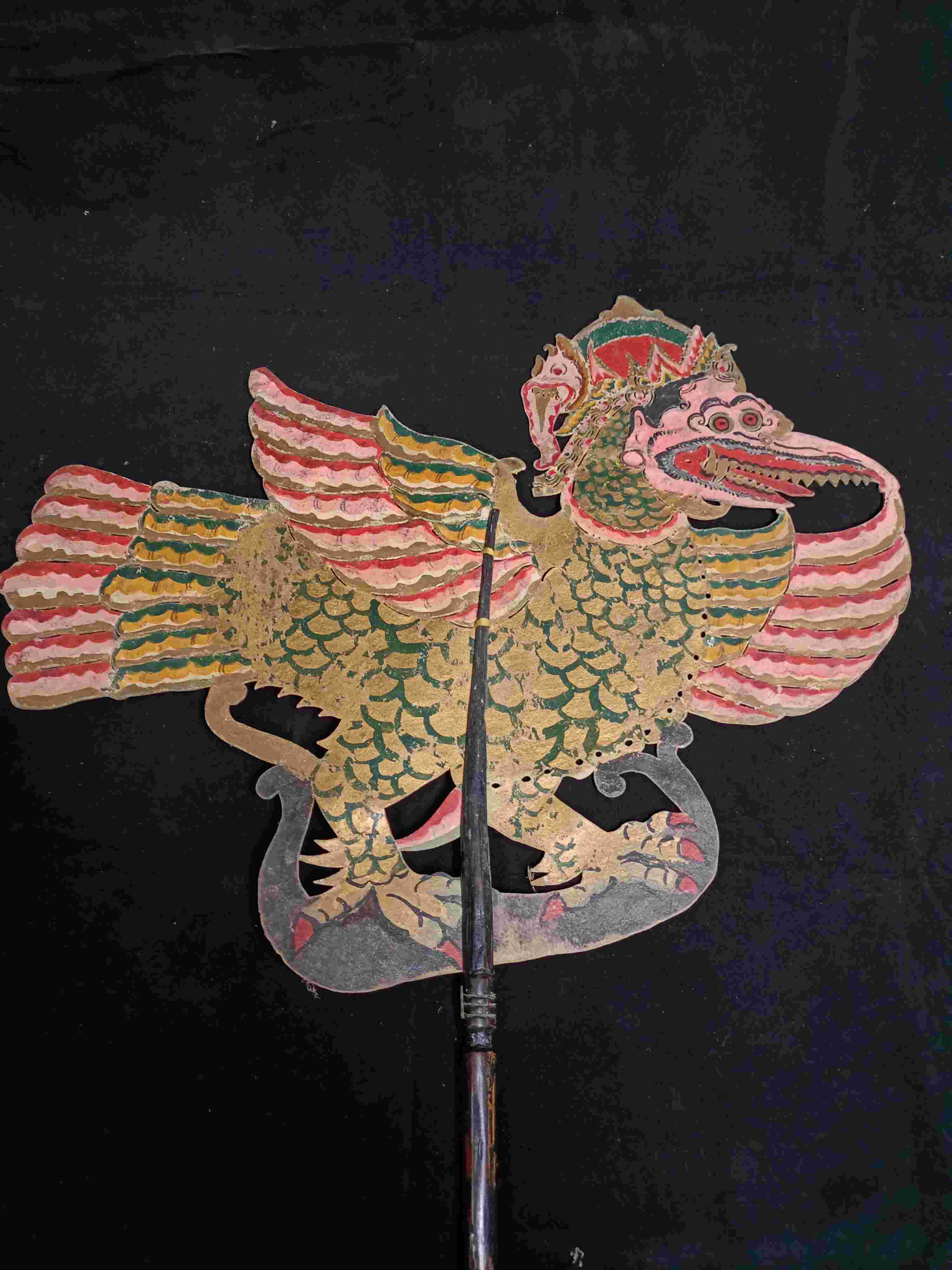 Wayang Kulit Jatayu Lawasan Tinggi wayang sampai stik 62 cm Tinggi wayang 42 cm Lebar 55 cm Wayang Kulit Lawasan