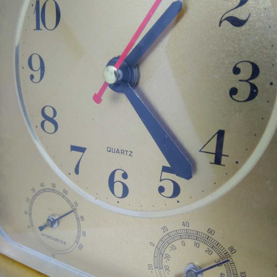 merek RHYTHMbuatan JAPANjam Quartzkomplit ada HYGROMETER & TEMPERATUREdiameter 17x20cmkondisi berfungsi normal