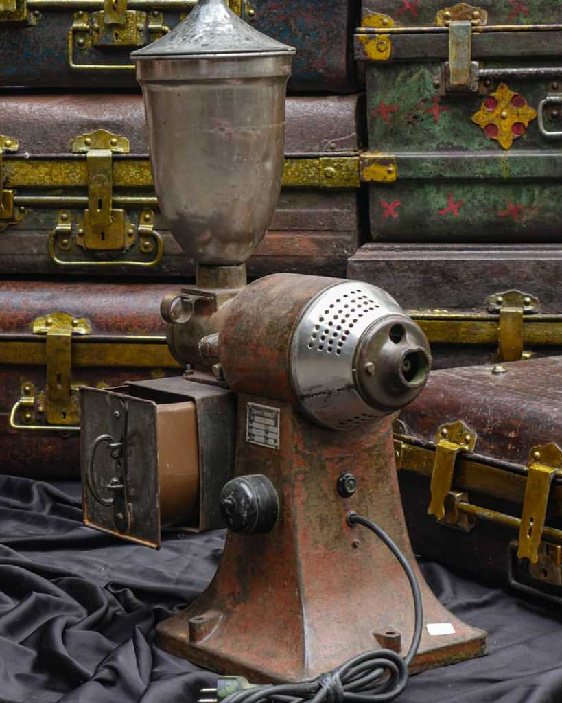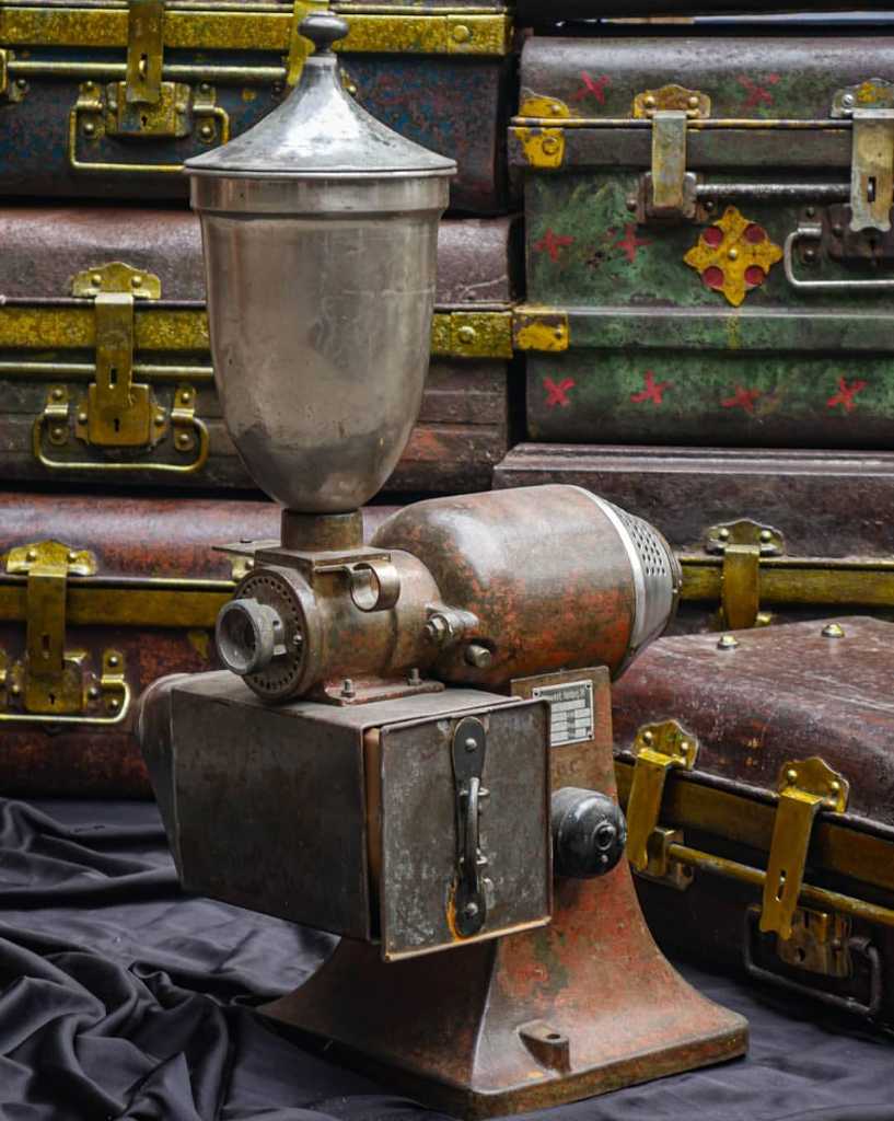 Biasanya dipakai di industri kopi tua jaman dulu. Kami kesulitan melacak asal usul benda ini secara detail. Pastinya jelas toko kopi tua yg pakai. Hampir mirip dengan grinder kopi milik Toko Kopi Aroma di Bandung. Grinder kopi ini buatan Jerman, kelistrikan 110. Perusahan pembuat mesin giling kopi ini masih ada sampai saat ini, produk barunya bisa kalian lihat di Otten Coffee. Grinder ini cocok dijadikan sebagai pajangan dan koleksi di warung kopi karena sejarahnya.