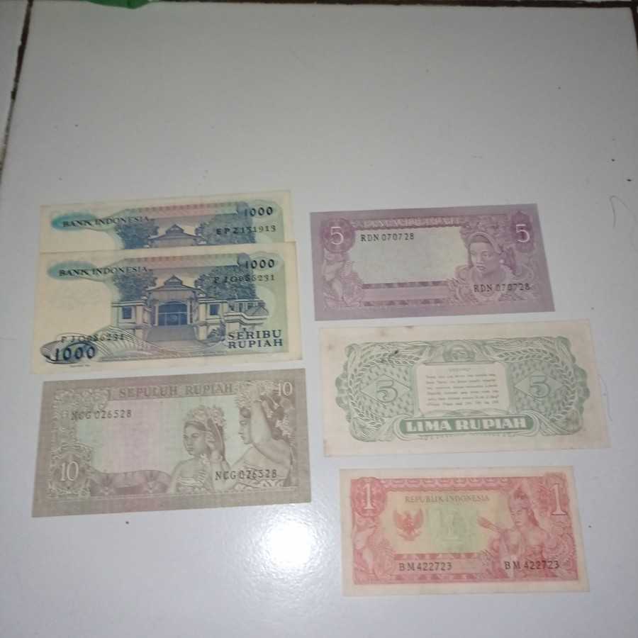 kondisi campur terdiri dari beberapa macam2 lembar sisinga1 lembar 5 ORI (Orang Republik Indonesia) unc1 lembar 10 rupiah soekarno vf1 lembar 5 soekarno xf to au1 lembar 1 soekarno unckondisi masih layak koleksimasih layak maharuang asli