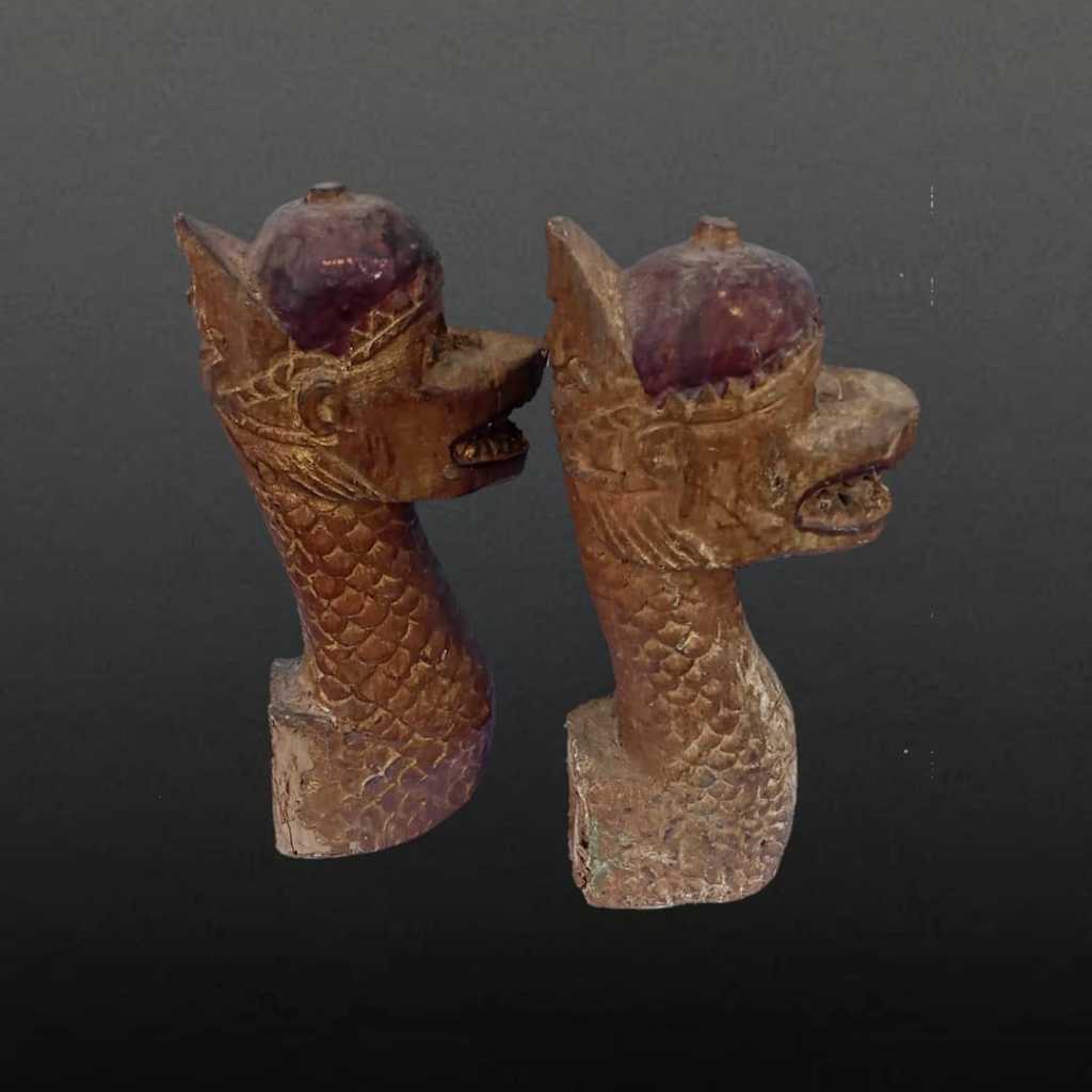 Patung Kepala naga. (Harga Sepasang).Material: kayu.Size : 37*18*7 cm.