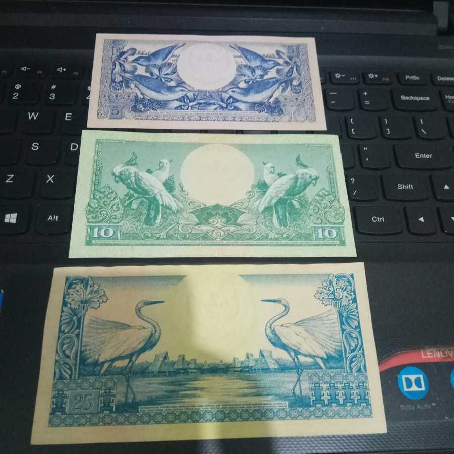 kondisi layak koleksiterdiri dari :1 lembar 5 rupiah bunga1 lembar 10 rupiah bunga1 lembar 25 rupiah bungalayak maharuang aslikertas masih utuh dan tidak sobek